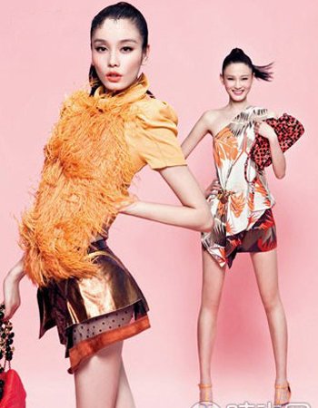左图:鲜艳的鸵鸟毛流苏在明亮的橙色背景下显得动感迷人。一条非常短的金属皮裙展现出性感的曲线,有效地平衡了上身的沉重感。