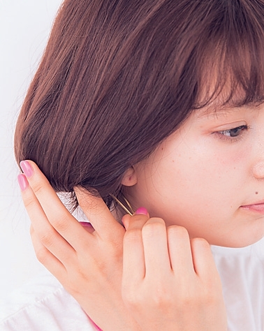 将发髻卷向内侧:将食指插入发髻的中央,直接转动手指将发髻卷向内侧。