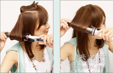 2.从右边取出你的头发,准备用卷发器卷起来。提示:可以使用28厘米或30厘米的卷发器。