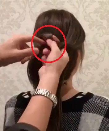 第四步> >把脖子下面的头发绕在马尾辫上