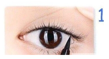 继续用刚才的眼线画内眼线,要特别小心,毕竟它离眼球太近了,如果你太不耐烦,你可能会碰到眼球!