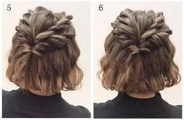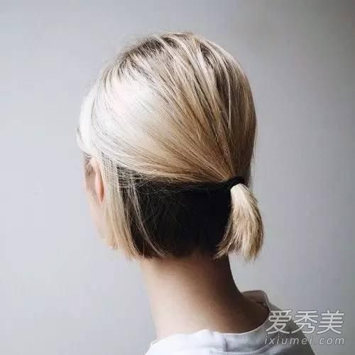 5.半丸子头短发也有半丸子头。只要在一个小马尾辫的基础上把它弯成一个小球。
