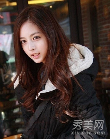 深棕色染发相对年轻,呈现出时尚的氛围,适合皮肤较白的女孩,蓬松的卷发搭配中分发型,完美塑造小脸型效果。