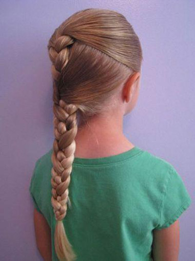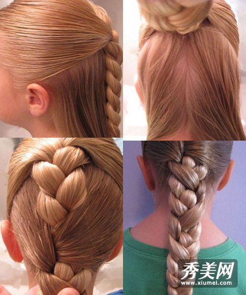 第一步:首先,小女孩应该留着优雅而有弹性的长直发。将长直发梳成背部形状,所有的头发都卷曲在背后,将头顶和侧发梳在一起,并从头发旋转的位置将其编织成长辫子。