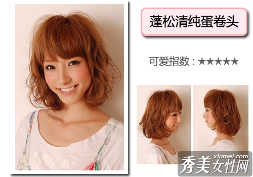 发型评论:除了梨花头和BOB头之外,蛋卷是最吸引女孩的发型!不同于其他卷发的浪漫感觉,蛋卷更漂亮,突出了MM的纯粹气质。卷蛋器发型的关键是头发末端的内卷和蓬松度。稍微拨弄一下头发会给人一种凌乱的感觉,这更有吸引力。头发颜色鲜艳,可爱度会立刻上升。