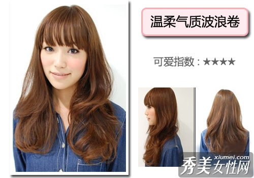 发型点评:这种发型纯净大方。两颊的发丝使脸部线条更加明显,下巴也显得更加尖尖,微微卷曲的线条加上美丽的发尾,让人感觉非常柔软、时尚、年轻。微微弯曲的浓密刘海遮住了眉毛,使得眼睛看起来非常生动。轻微卷曲,方便日常护理,似乎更受大多数女孩的欢迎,但也赢得了男人的心!