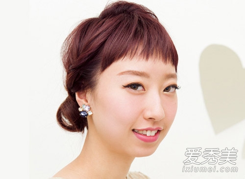 低发髻的短刘海不仅能让你的妹妹看起来很清新,而且短刘海很前卫,很有个性,没有刘海会让你的脸看起来很清新。
