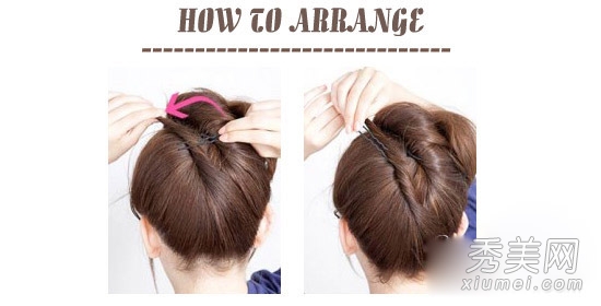 第五步:将头发的尾部绕着发盘扎成一个发髻。
