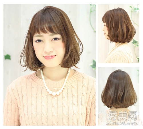 空多层次内波头齐感刘海甜美可爱。亚麻毛色使皮肤更白嫩。