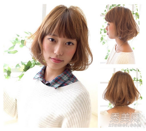 这也是波波头的设计,但是不同的发色和不同的气质,这种栗色的头发让MM的头发显得更白更嫩。