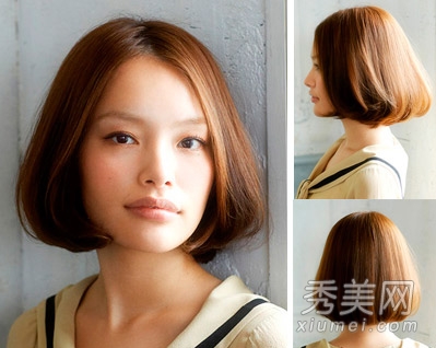 发型点评:这种鲍勃发型给人一种优雅的感觉。它被切割成圆弧形,强调女性的优雅和圆整。棕色头发的颜色更能突出皮肤的白色纹理。