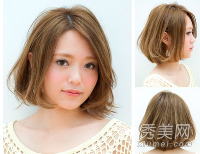 发型点评:经典的波波发型像洋娃娃一样精致可爱。利用内扣的卷曲和尾部创造一个超精细的小脸型效果。整体采用浅棕色头发颜色,凸显清新光泽。