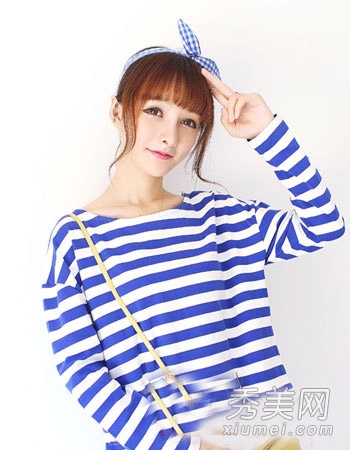 这种空邦奇发型将被介绍给清新可爱的女学生。随意将铁龙的直发剪成马尾,用简单的蝴蝶结发带将空邦奇的刘海与长刘海结合在一起,是不是既可爱又娇小?