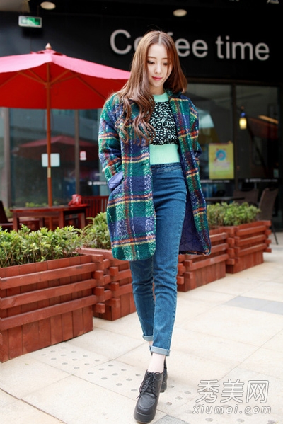 经典的无与伦比的格子羊毛外套是秋冬季必不可少的必备单品,深受女孩们的喜爱。长宽松版,简洁大方,修身时尚的上身。绿色毛衣,高腰牛仔裤,厚底短靴,非常漂亮和时尚。