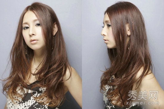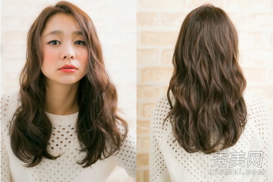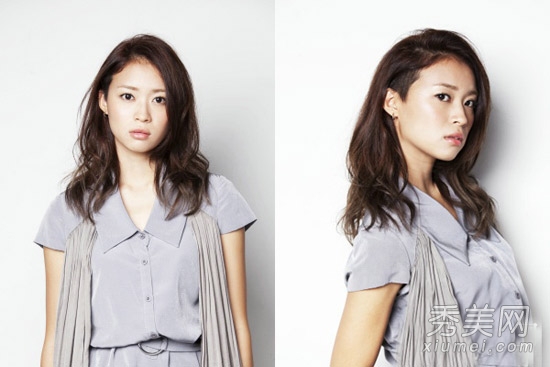 这也是一个松散的烫发。这种发型比前一种更随意,但是烫发的弧度考虑了脸型的弧度,所以面部修复的效果很明显。
