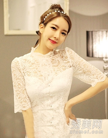 卷曲的邦奇是韩国萝莉美人的独特象征。它搭配迷人的减龄发型和浅蓝色蕾丝衬衫,清新漂亮,散发着春天的魅力。