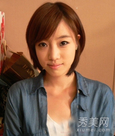 优雅的韩式短发,带着非常知性和女性化的刘海,给人一种干净的感觉,头发末端向外卷曲,让人觉得可爱。